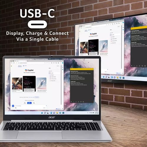COPILOT KEY- The Aspire Lite 15 features the brand new Microsoft Copilot key on its keyboard, giving you instant access to Microsoft’s AI-powered assistant.