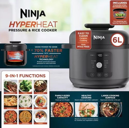 Ninja Hyper Heat 9 in 1 Pressure and Rice Cooker | PC201UK