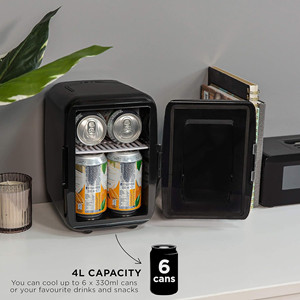 This Russell Hobbs Mini Compact Cooler is designed to fit neatly into smaller spaces. Ideal for your bedroom, home office or kitchen countertop, this appliance has 4L of space to fit 6 x 330ml drink cans, or a few of your favourite snacks within handy reach.